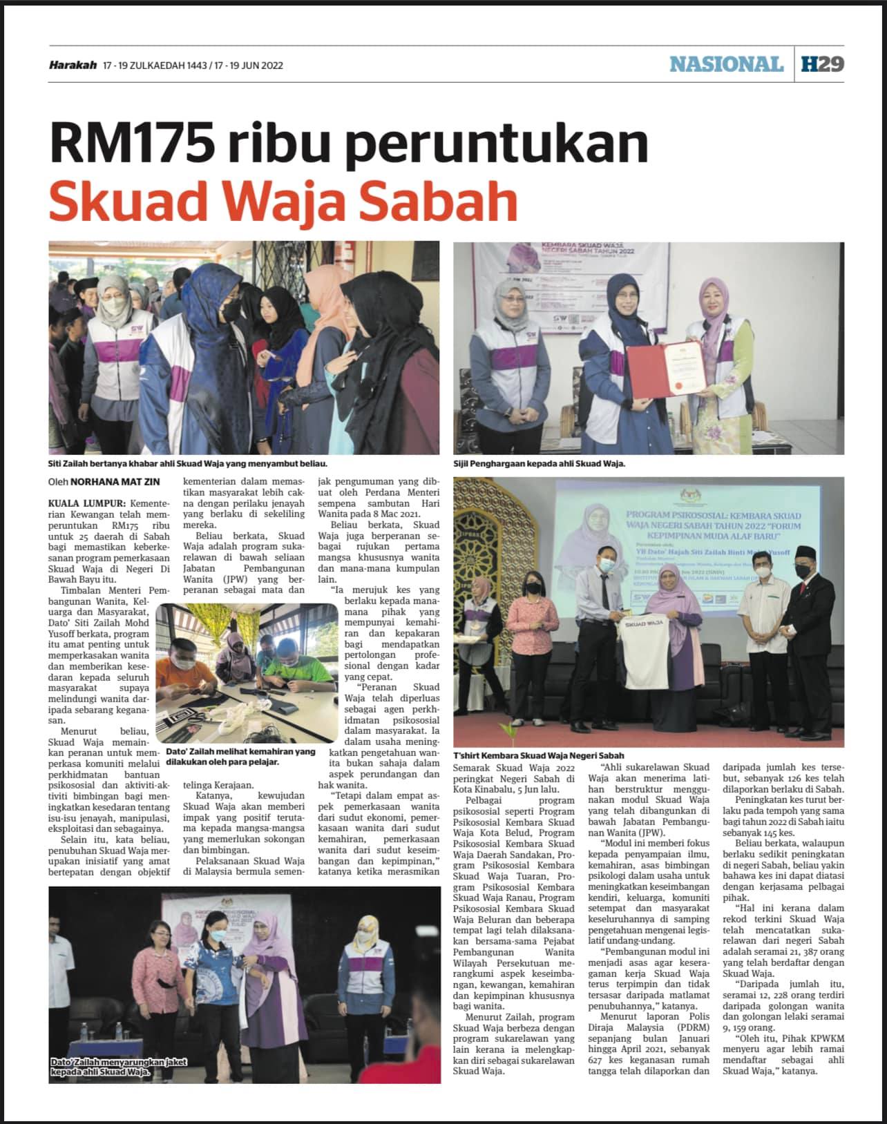 Dato' Siti Zailah Mohd Yusoff - RM175 Ribu Peruntukan Skuad Waja Sabah